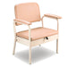 With a three-sided vanity board that conceals the commode bowl and padded seat and armrests that are coloured, this bedside commode is not only comfortable to use but will also blend into the decor of the room and appear like any piece of other furniture.