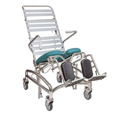 Tilt in Space Stainless Steel Mobile Shower Commode by JUVO. Ideal for clients who cannot shift their own body weight independently, the JUVO Tilt ...