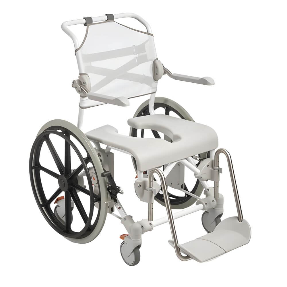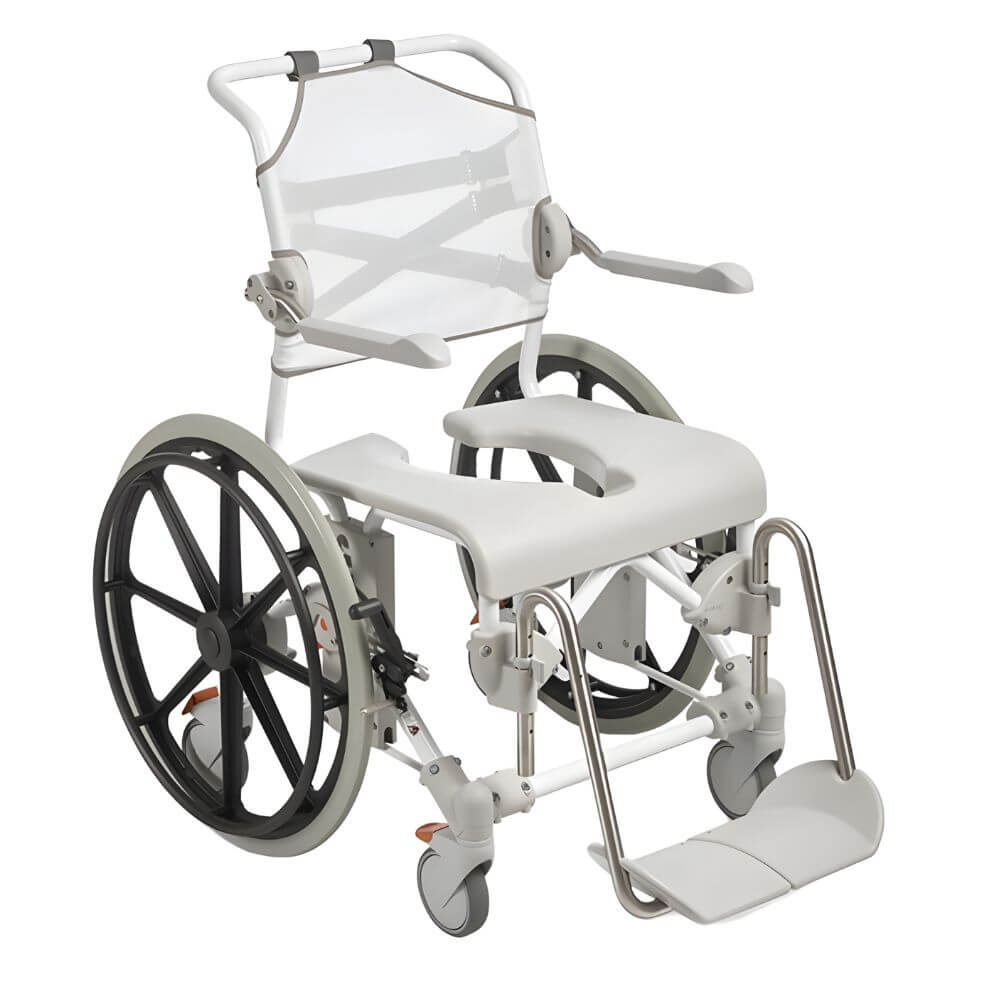 The Swift Mobil-2 is available in both Attendant Propelled and Self Propelled Commode models to match your specific mobility requirements. For larger users, an optional XL Backrest is available, making this a versatile option that can function as a bariatric shower commode with its generous 160kg safe working load. An optional pack, comprising a pan holder, pan with lid, and a positioning belt, adds further convenience.
