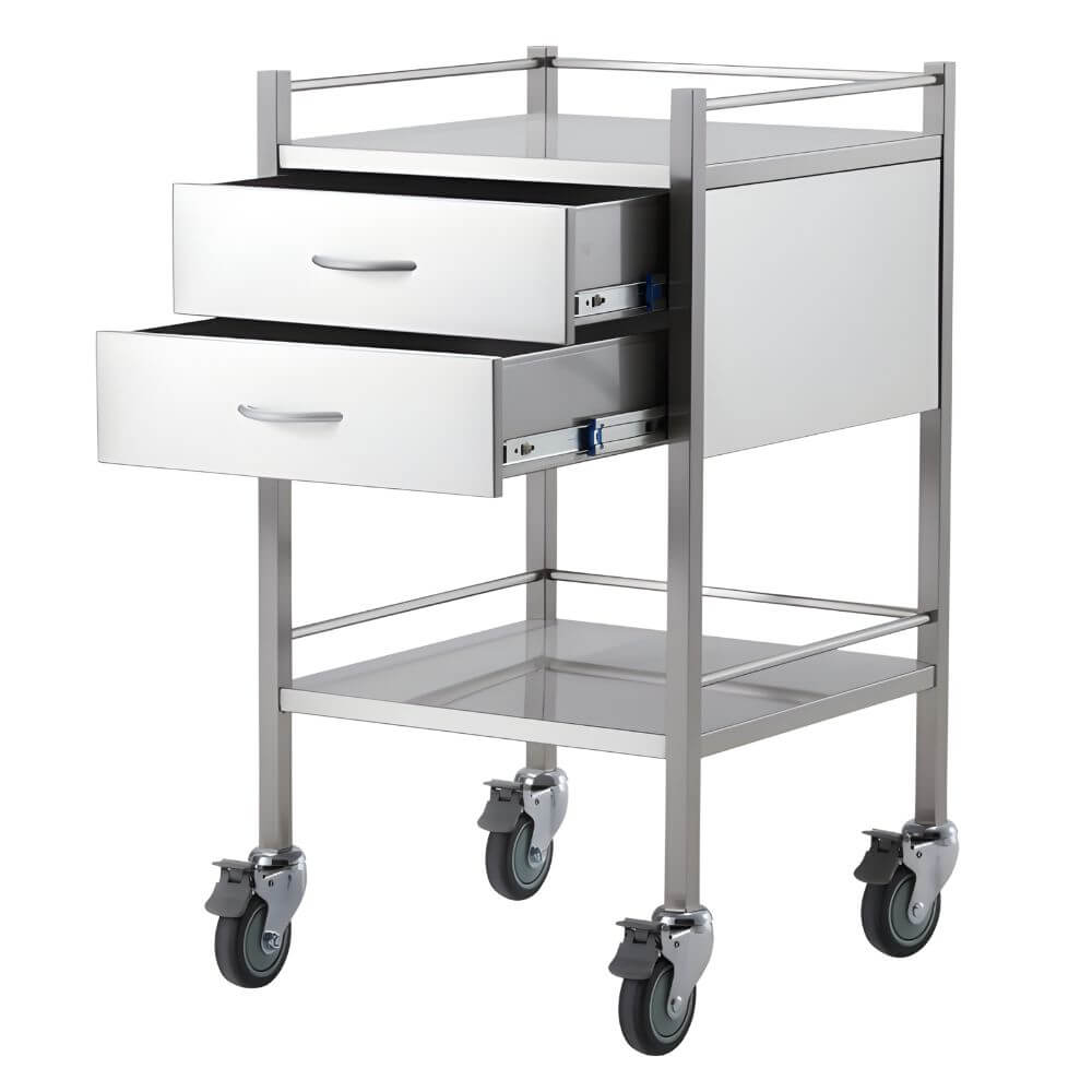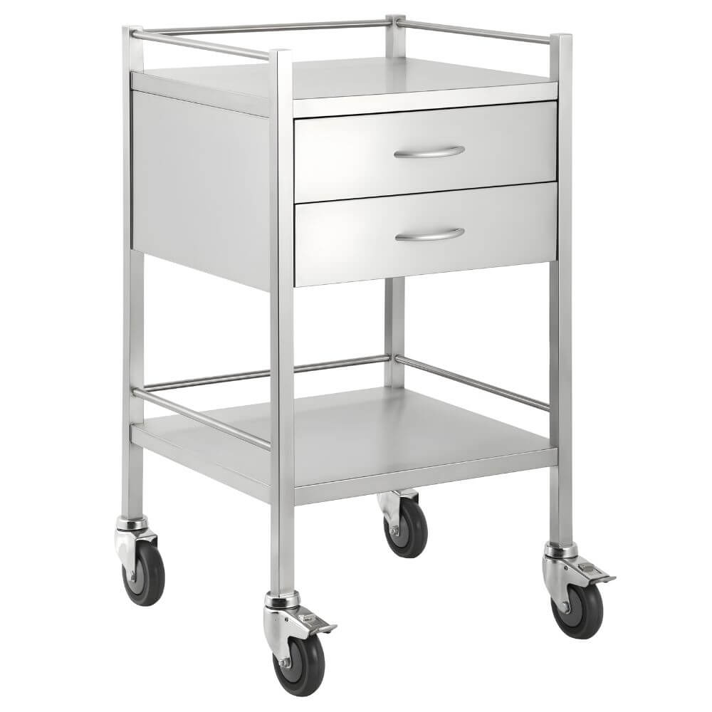 Stainless Steel Dressing Trolley - 2 Drawers & Shelf